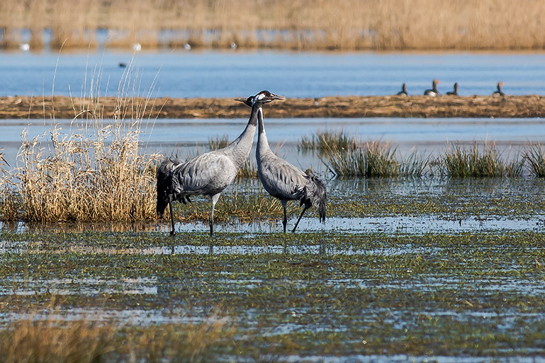 Vi havde i 2009 et ynglende tranepar der fik 3 unger, i 2010 fik de 2 unger, i 2011 2 unger og i 2012 2 unger, 2013 2 unger, og i 2014 1 unge der overlevede. Ungerne er meget udsatte da de først kan flyve når de næste har nået voksenstørrelse. I 2015, 2016, 2017 ynglede tranerne igen og fik mellem 1 og 2 unger på vingerne. I 2018 har vi haft 2 ynglende par. De ene har en overlevende unge, det andet par fik 2 unger som desværre er døde idet ræven fik fat i dem. Siden 2019 og til nu har tranerne fået unger men de bliver dræbt af ræven. Naturstyrelsen finder at der er traner nok i området så vi kunne ikke få tilladelse til at bekæmpe ræv på arealerne hvor tranerne færdedes!!!!!